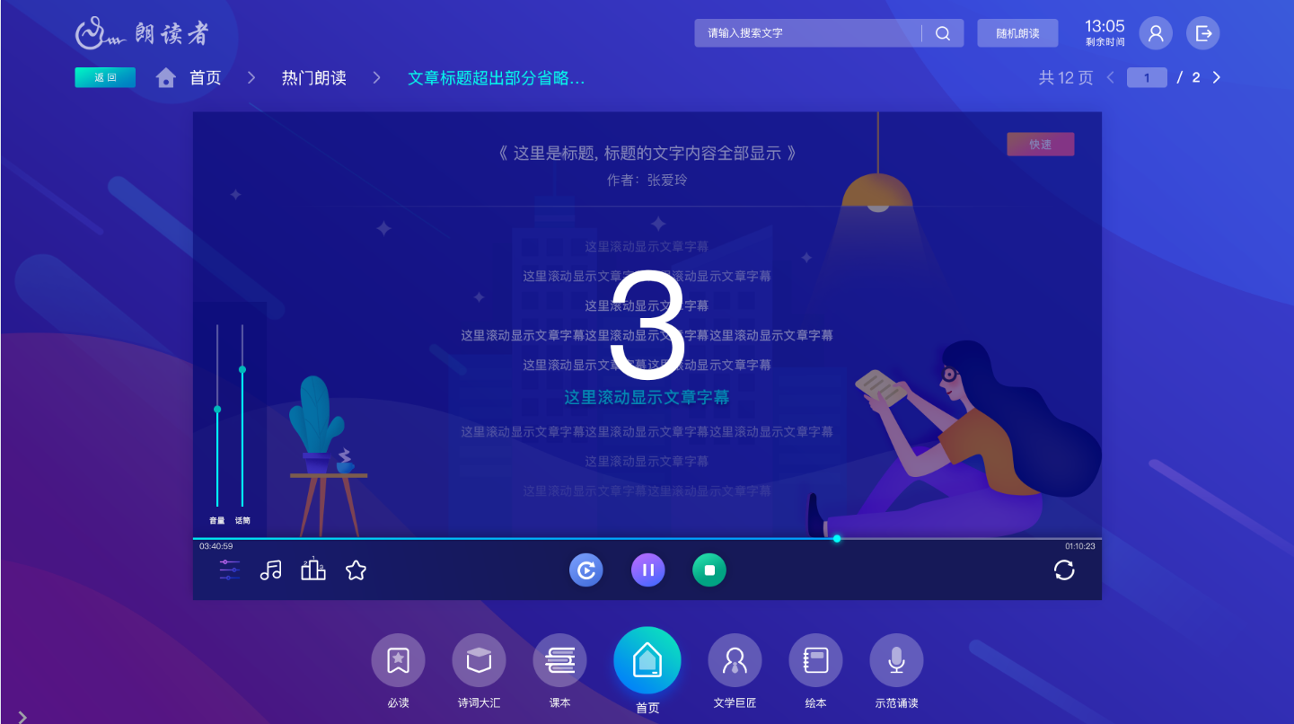 該模塊是隨機(jī)朗讀,無(wú)需用戶選擇任何朗讀素材,朗讀的作品是由系統(tǒng)隨機(jī)產(chǎn)生的素材。