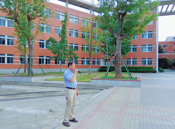 帶著心中的疑惑,我立即與南外負責人沈主任通了電話,初步約定6月5日到學校進行實地勘察?;疑奶炜珍冷罏r瀝,途經(jīng)的鐘山風景名勝區(qū)因為煙雨顯得朦朧而幽深。早上九點,我與繆工準時到達了學校。然而,令我感動的是,沈主任已經(jīng)早早地站在門衛(wèi)室外等候我們了!簡短的寒暄之后,沈主任徑直領(lǐng)著我們前往現(xiàn)場進行勘查。