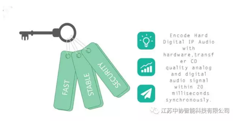 Encode Hard Digital IP Audio with hardware . Transfer CD quality analog and digital audio signal within 20 milliseconds synchronously.So everybody has “zero latency” or “no la-tency” brodcasting experience.